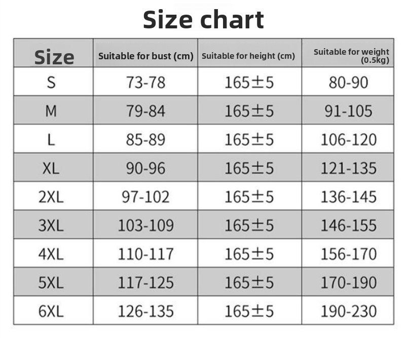 2XL (67.5-72.5kg), 3XL (72.5-77.5kg), 4XL (77.5-85kg)