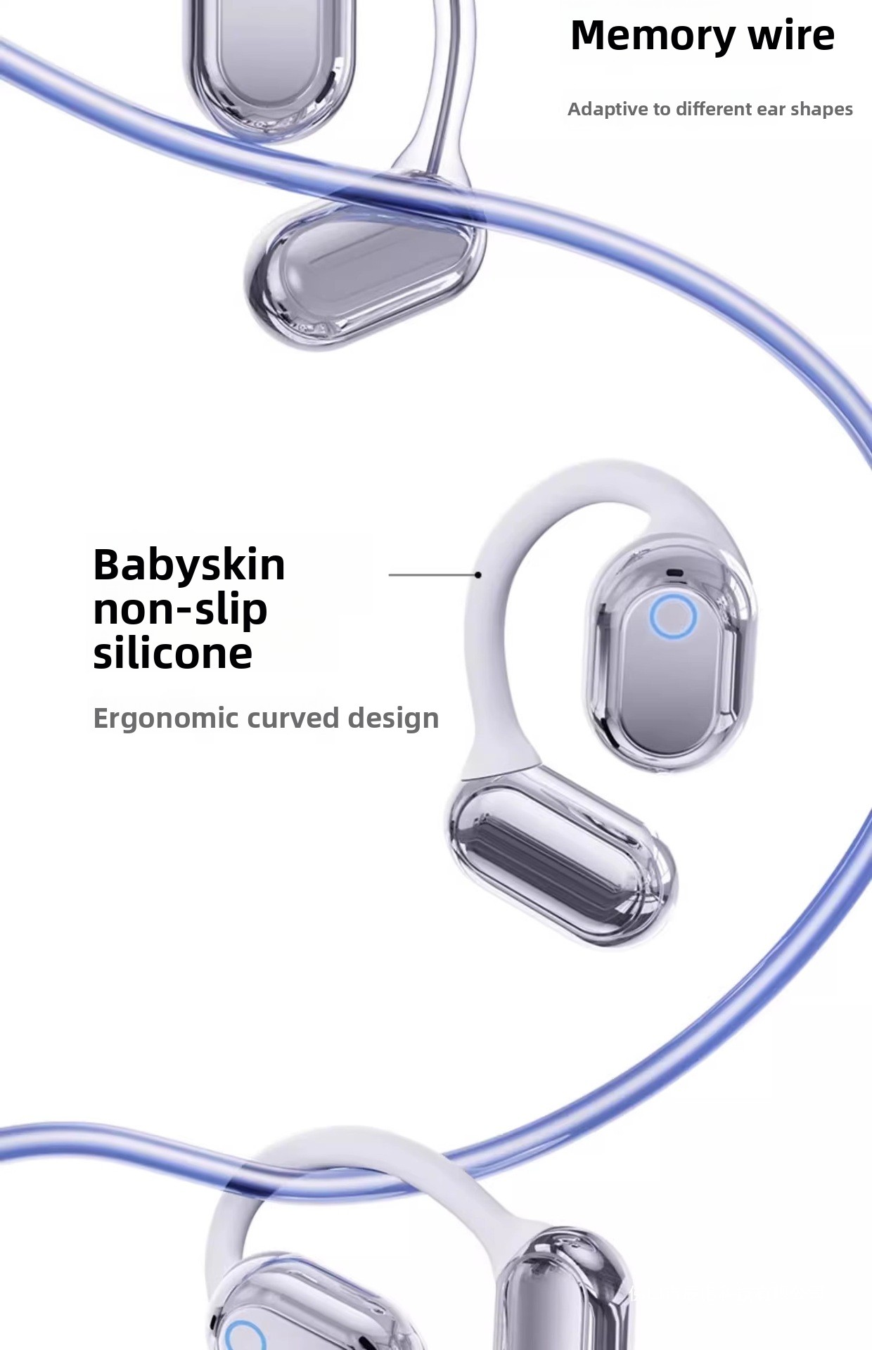 Ergonomic Ear-Hook Design: Lightweight, secure fit for active use and all-day comfort.
