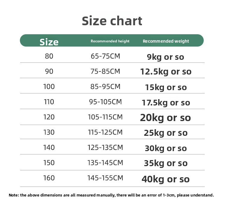 Sizes (Height): 90cm, 100cm, 110cm, 120cm, 130cm, 140cm, 150cm, 160cm, 170cm, 180cm