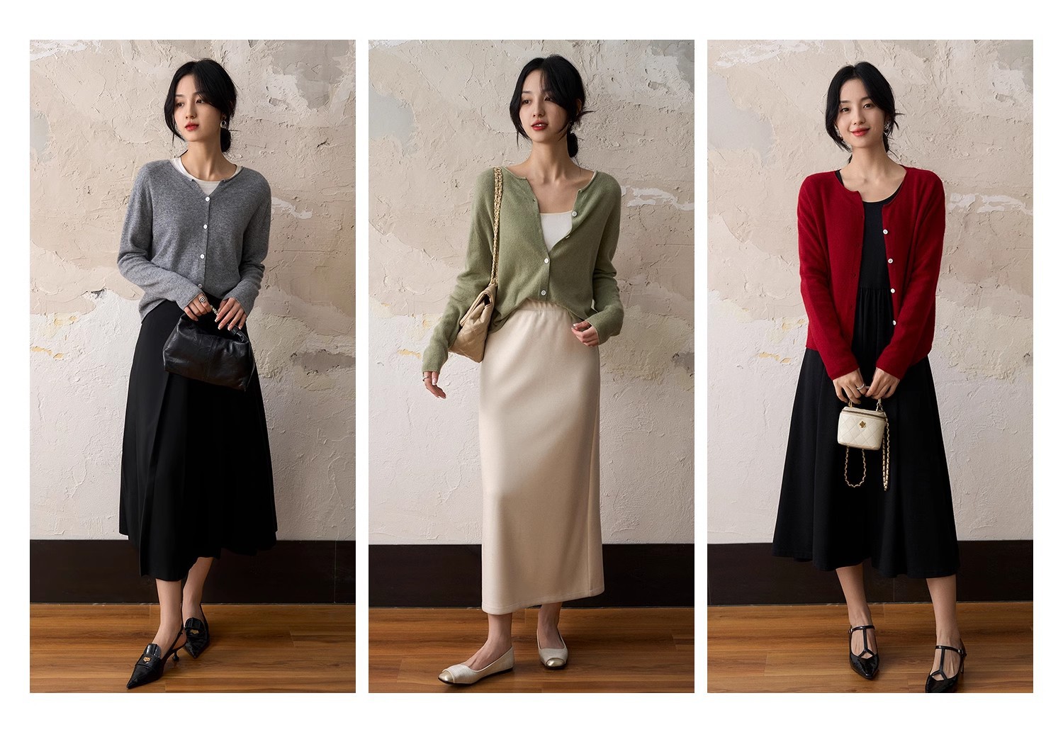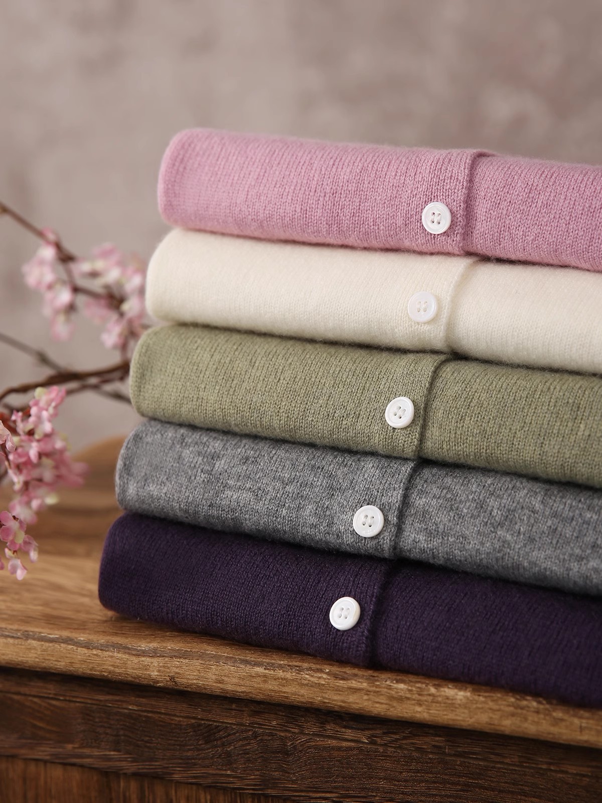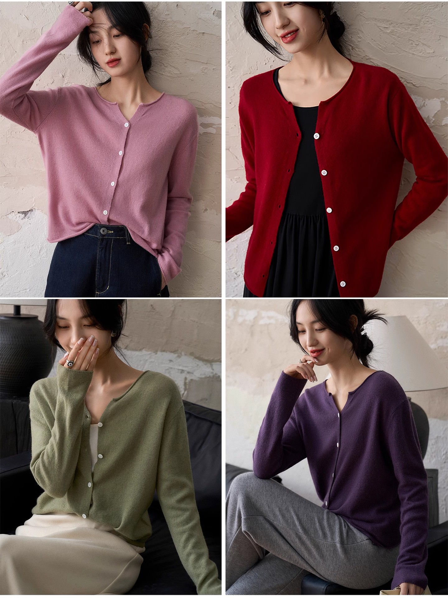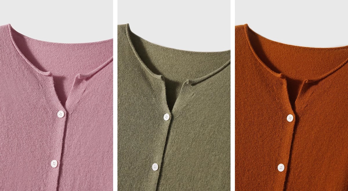 Style: Cardigan, round neck, long sleeve
