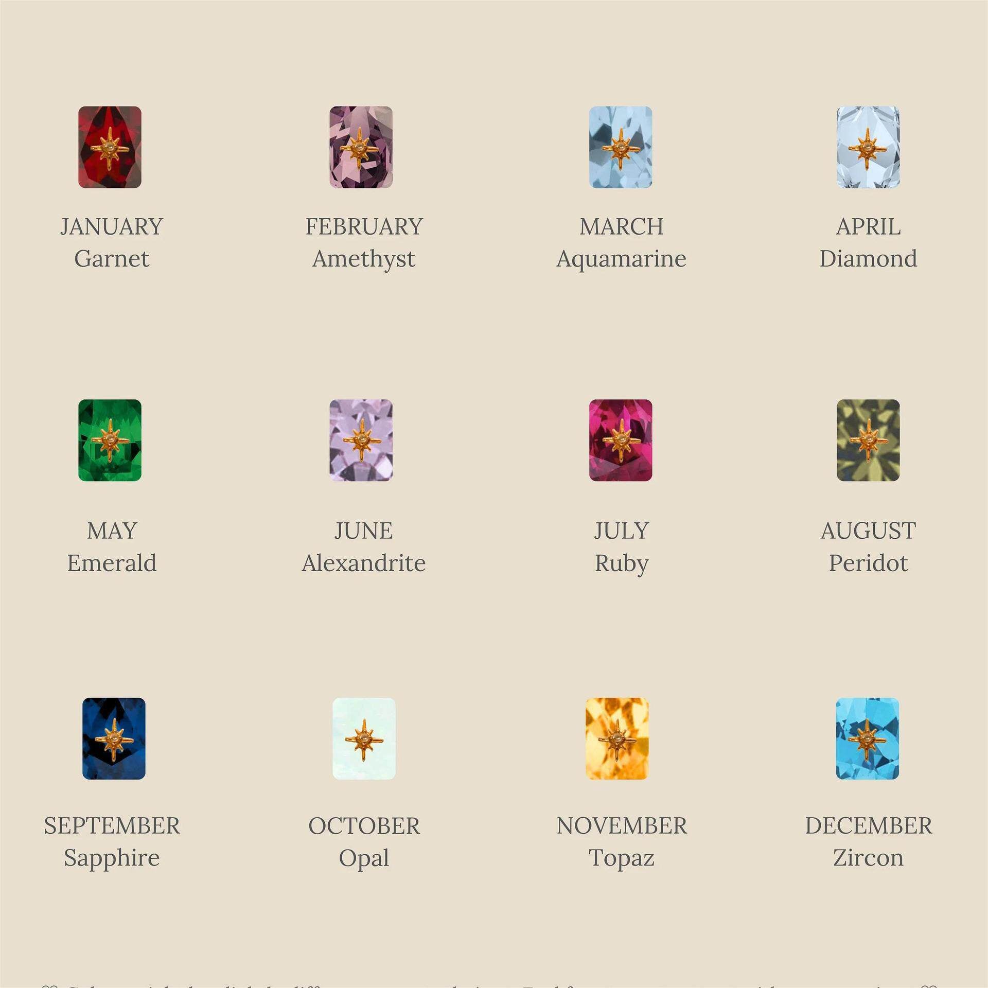 Color Variations: 12 options (January to December, each with gold chain)