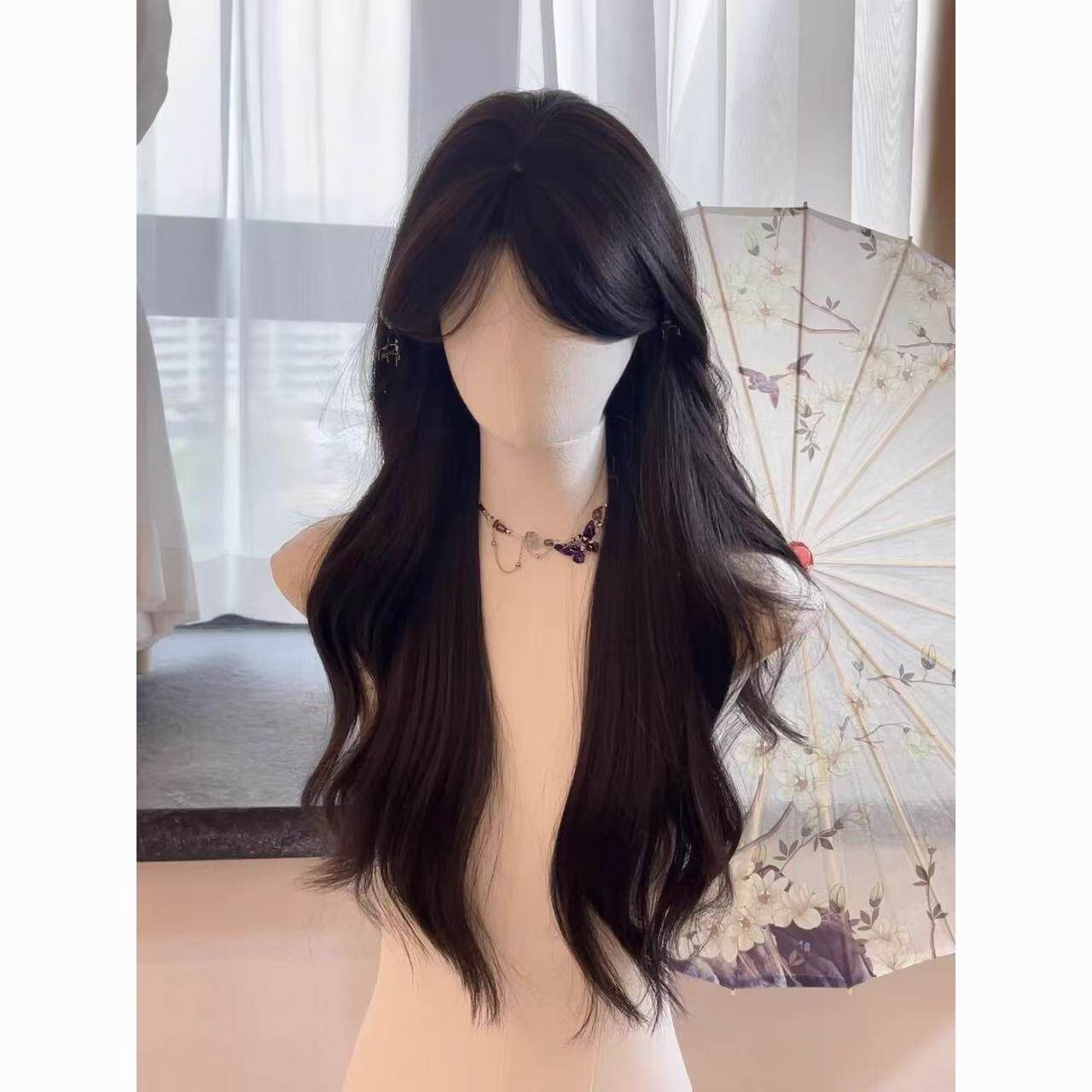 Styling Versatility: Long wavy design with middle part for diverse hairstyles.